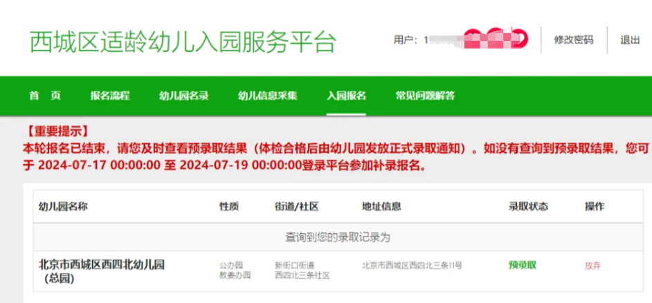 下一篇:2024年丰台区建华一诺幼儿园录取通知书