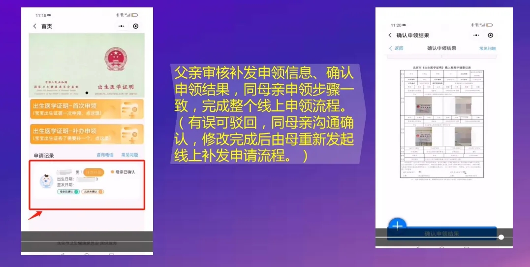 11.再由父亲审核申领信息、确认申领结果,完成整个线上申领流程