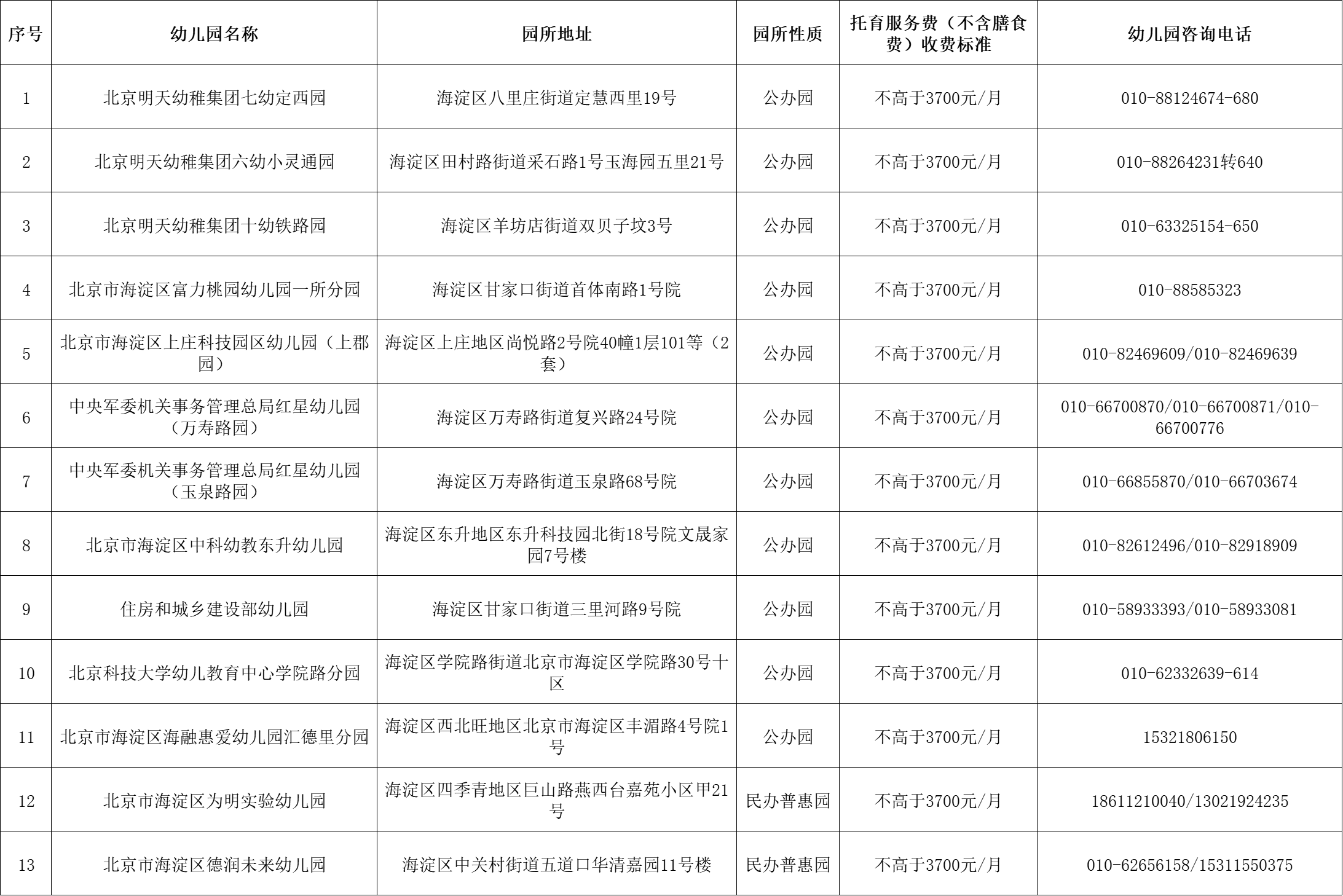 海淀区普惠托育服务试点幼儿园名单(第六批)