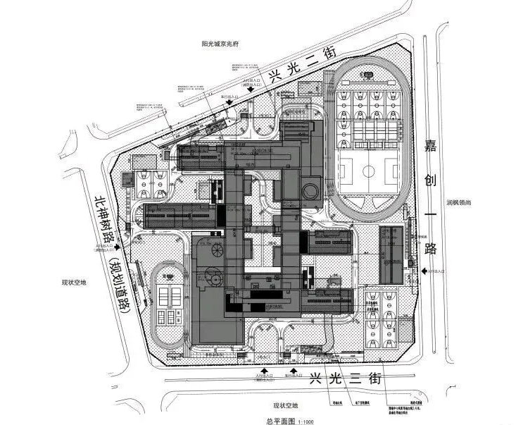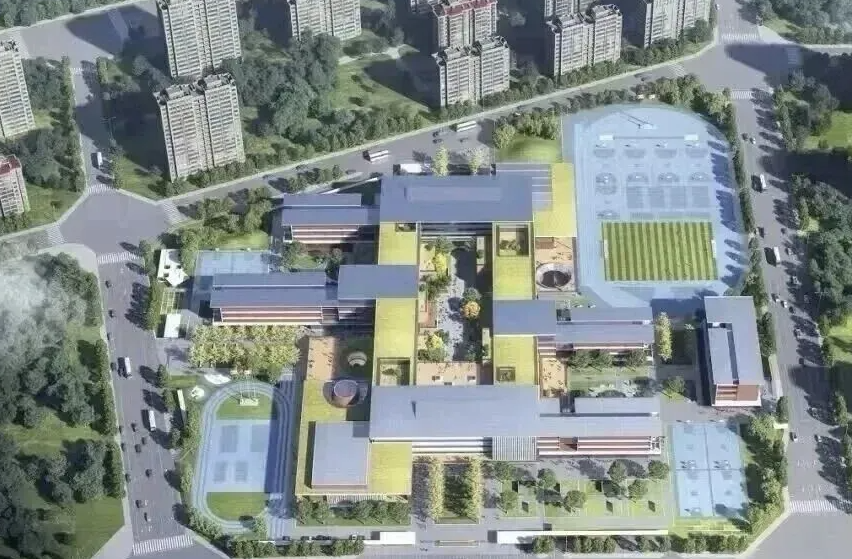 从规模来看,学校总建筑面积差不多9.4万平方米,其中地上部分约7.9万平方米,地下大概1.5万平方米,能满足日常教学和活动需求。学校外墙还选了暗红色为主色调,看着既稳重又有校园氛围。