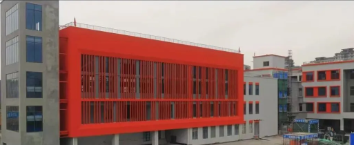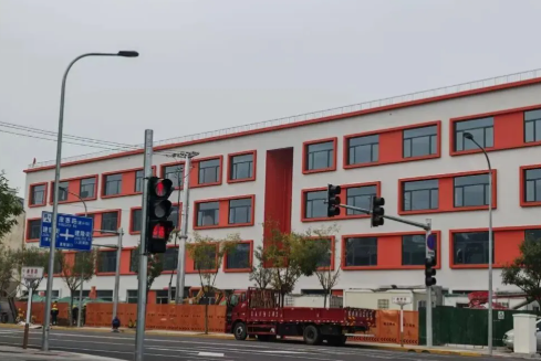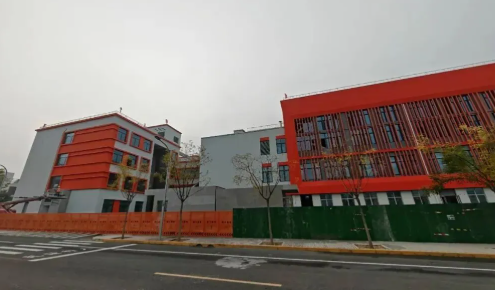 新建配套学校已初具规模了,学校的外墙色彩鲜明非常有活力,可以看出学校建设基本完成了,目前正在进行校区场地施工: