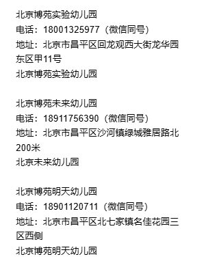 4、各区幼儿园咨询联系方式可点击查看→北京16区适龄幼儿入园服务平台招生咨询电话一览表;