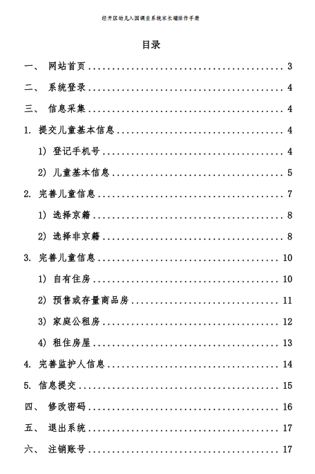 《北京经济技术开发区适龄幼儿入园(托)需求调查系统》家长操作手册
