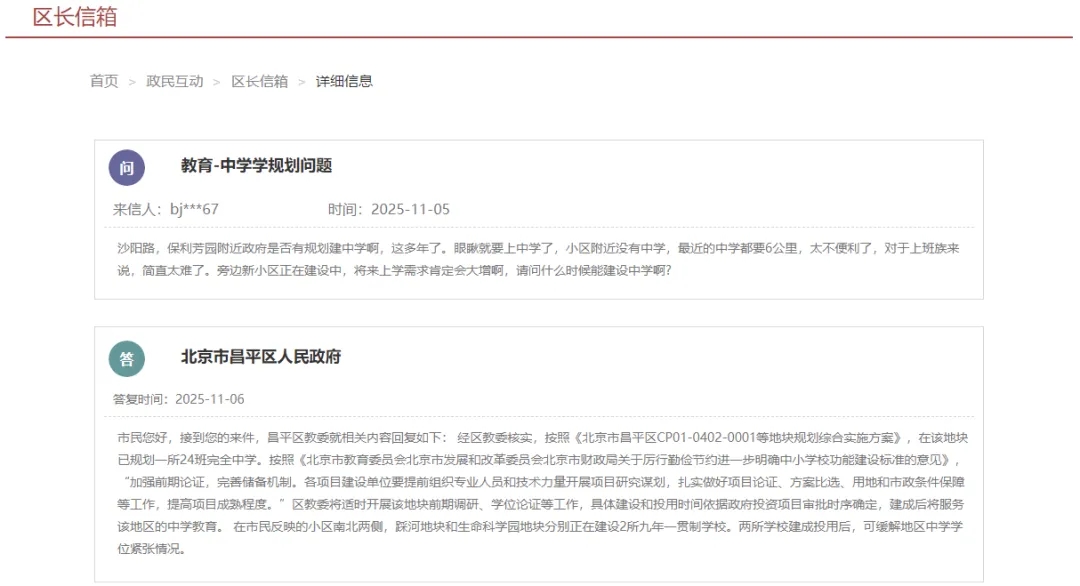 昌平区教委就相关内容回复表示:经区教委核实,按照《北京市昌平区CP01-0402-0001等地块规划综合实施方案》,在该地块已规划一所24班完全中学。