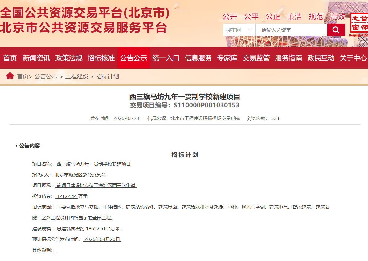 温馨提醒:本文为您分享北京市学校相关消息,具体请以实际情况为准。北京各区新建校、新建园、扩改建学校可关注2026年北京中小学每月新动态:新建校/扩建校/更名校信息全汇总