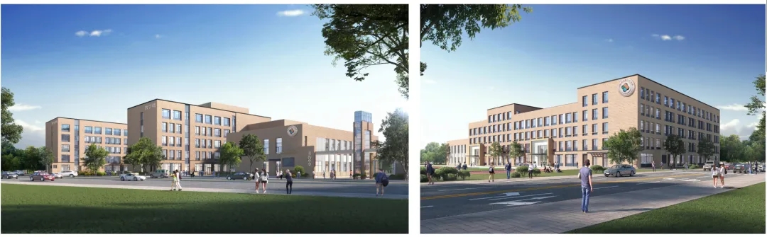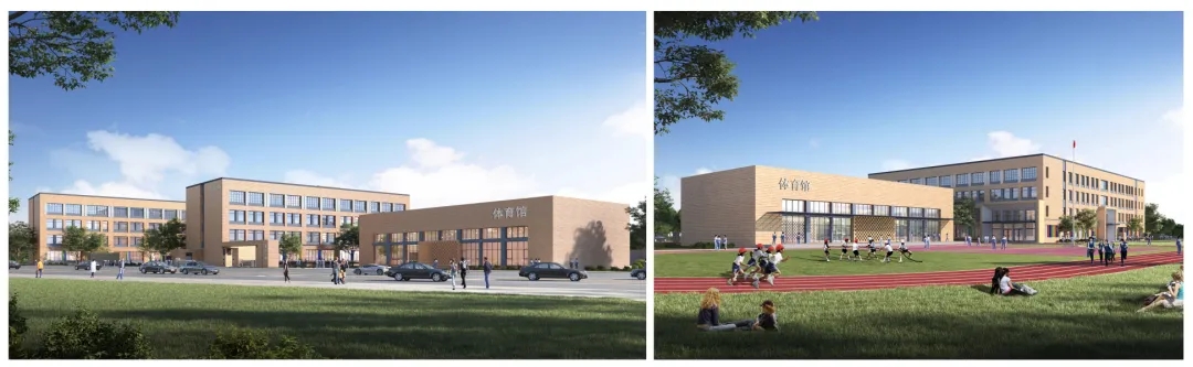 从效果图上可以看出,北京中学东坝北校区项目(高中部)承袭了该校本部的建设风格,呈现红砖灰顶的现代简约风。