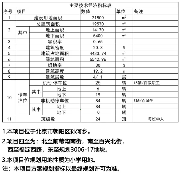 朝阳区孙河乡前苇沟组团3006-012地块规划小学建设工程项目方案公示