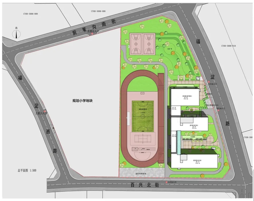 朝阳区孙河乡前苇沟组团 3006-012地块规划小学建设工程项目位于孙河乡。项目四至为:北至前苇沟南街,东至3006-017地块,南至百兴北街,西至福淀西路。建设单位为北京市朝阳区教育服务保障中心,现委托北京立人设计集团有限公司进行了规划方案设计: