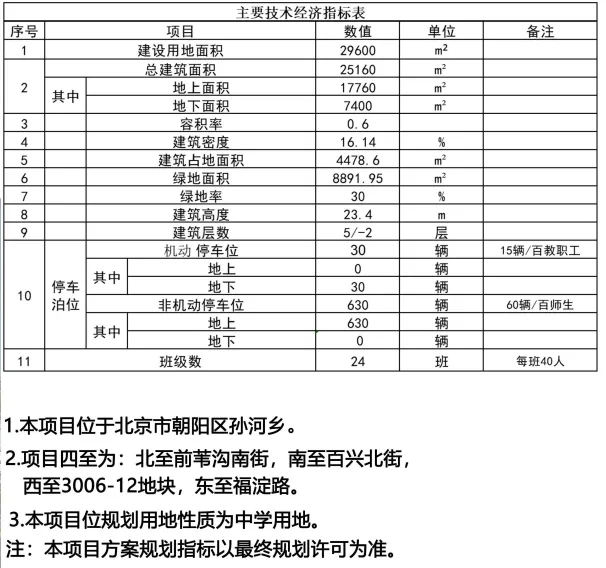 朝阳区孙河乡前苇沟组团3006-017地块规划中学建设工程项目方案公示