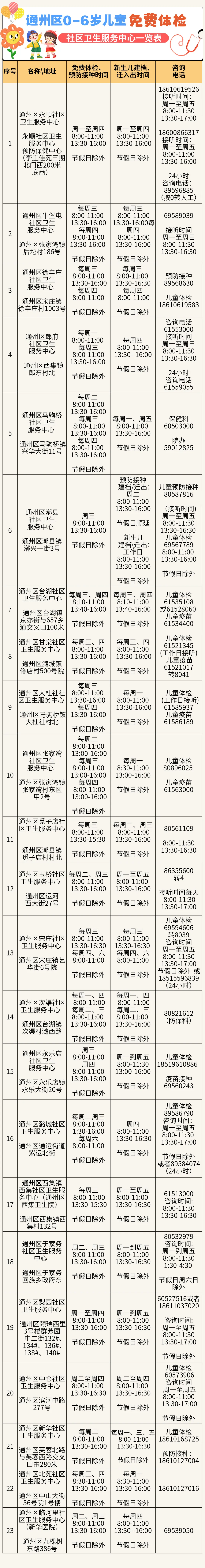 通州区推出0-6岁儿童免费体检惠民政策,包含身高体重、视力听力、血常规等多项检查,助力儿童健康成长。家长可就近选择社区卫生服务中心参与,本文同步全区各社区名单及具体体检项目,方便提前规划,为孩子健康保驾护航!