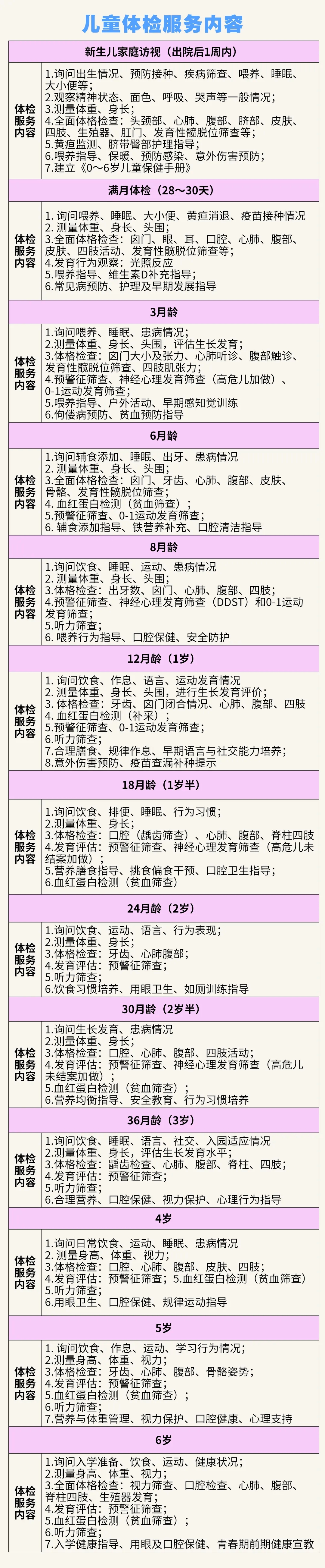 家长注意啦!0-6岁儿童免费管理服务是国家基本公共卫生服务内容,请按时带孩子进行免费儿童体检~