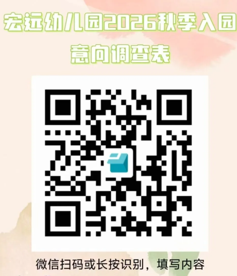 请有意向报名的家长扫描下方二维码,按需填写相关基本信息,方便园方统筹新学期学位,登记资料信息一律保密,请家长放心!