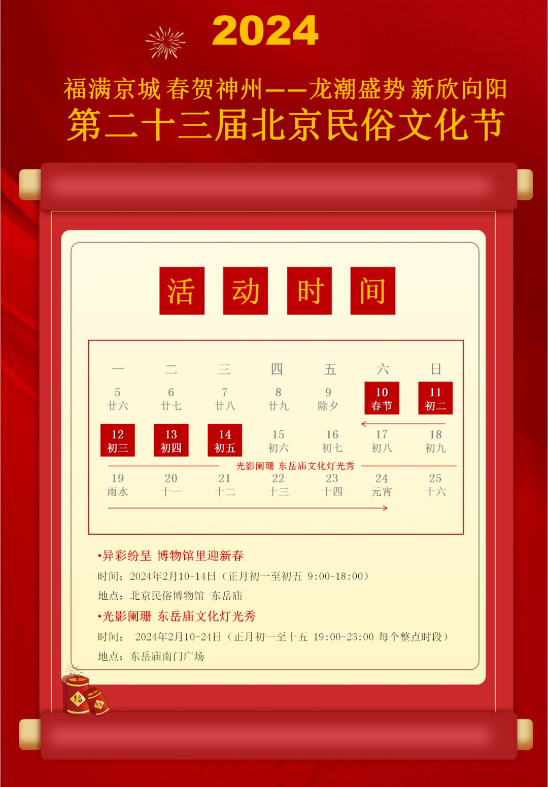 朝阳区将于2月10日至2月14日(正月初一至正月初五)在北京民俗博物馆举办第二十三届北京民俗文化节。