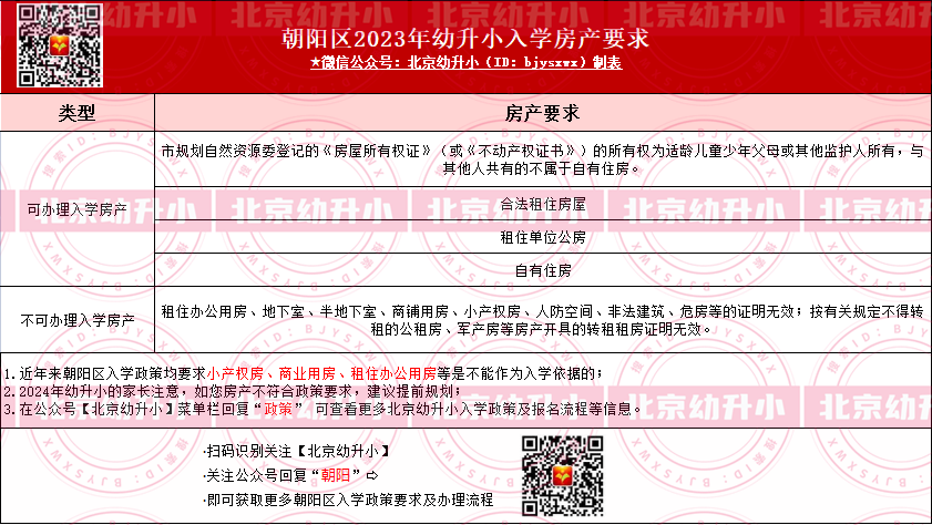 朝阳区入学房产性质、不可作为入学房产性质要求为,2024年朝阳区幼升小家长可先行参考: