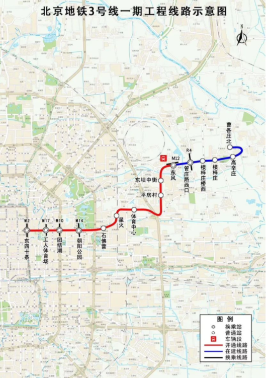 3号线一期建成通车后,将串联多条南北向和东西向轨道交通主干线路,大大提升全市轨道交通线网的通达性和乘客出行的便捷性,有效解决北京朝阳站客流接驳难题,对改善北京东部地区交通出行和促进区域经济社会发展起到积极作用。据了解,3号线一期将在星火站接驳铁路北京朝阳站客流。