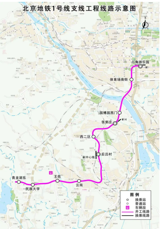 目前,1号线支线已实现开工目标。1号线支线(青龙湖东-八角游乐园)线路长约21公里,设车站10座,是轨道交通三期建设规划中的重要织补、加密线路和支撑河西地区发展的引导线。