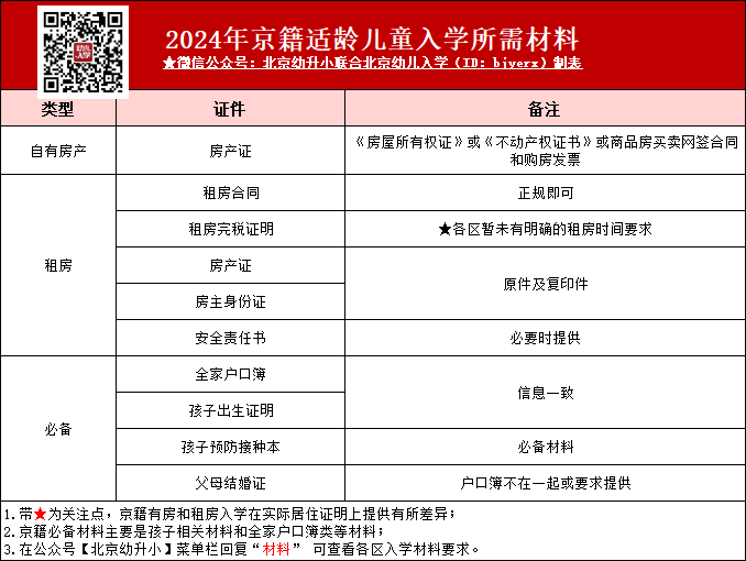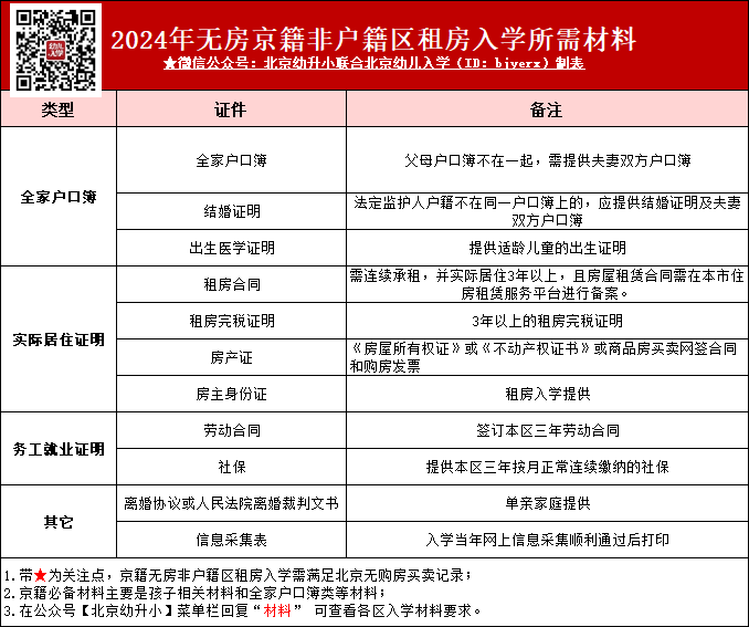 2024年北京幼升小京籍租房入学材料清单