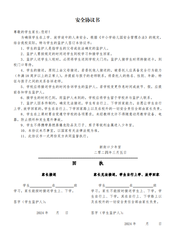2. 请自行下载并签署:“安全协议”,开课时交给专业教师。