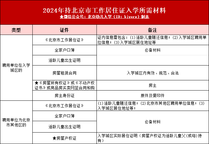 北京各区持北京工作居住证幼升小入学要求及入学流程大不同,详细点击看:2024年北京幼升小各区持北京工作居住证入学指南(含入学条件、入学材料、入学流程...)