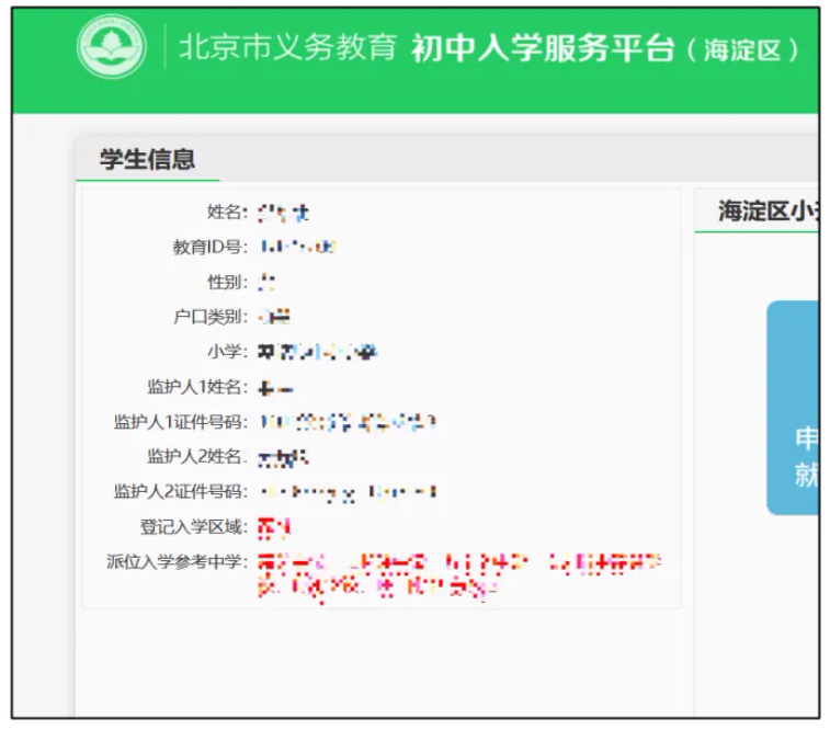 2024年海淀区初中入学服务平台使用说明