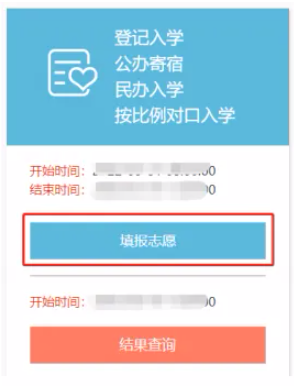 1、点击“派位志愿填报及结果查询”按钮,点击“派位入学志愿填报”栏的“填报志愿”按钮。