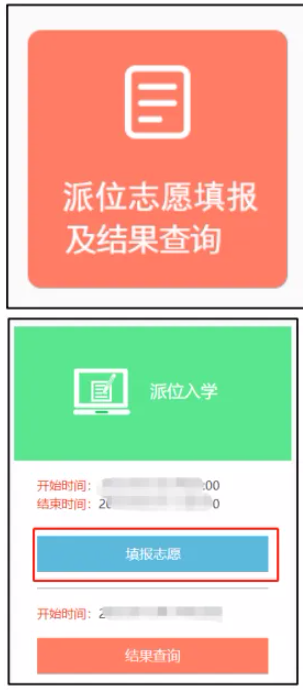 1、点击“派位志愿填报及结果查询”按钮
