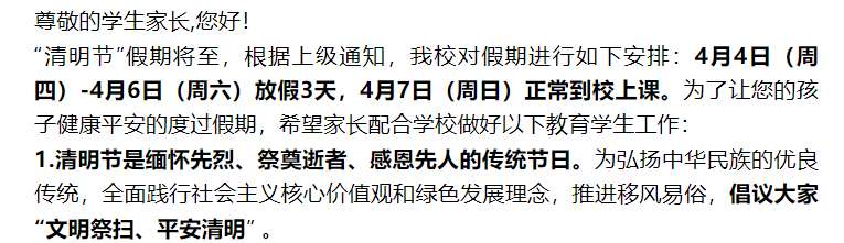 通州区甘棠中学2024年清明节假期致家长的一封信