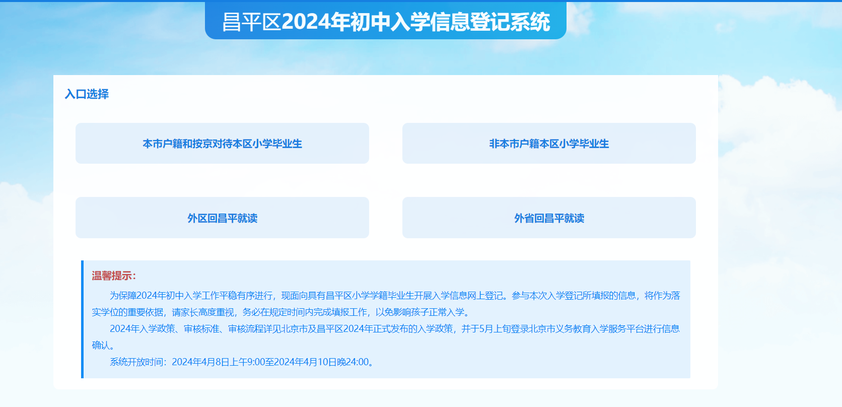 昌平区2024初中入学信息登记系统4月10日截止填报