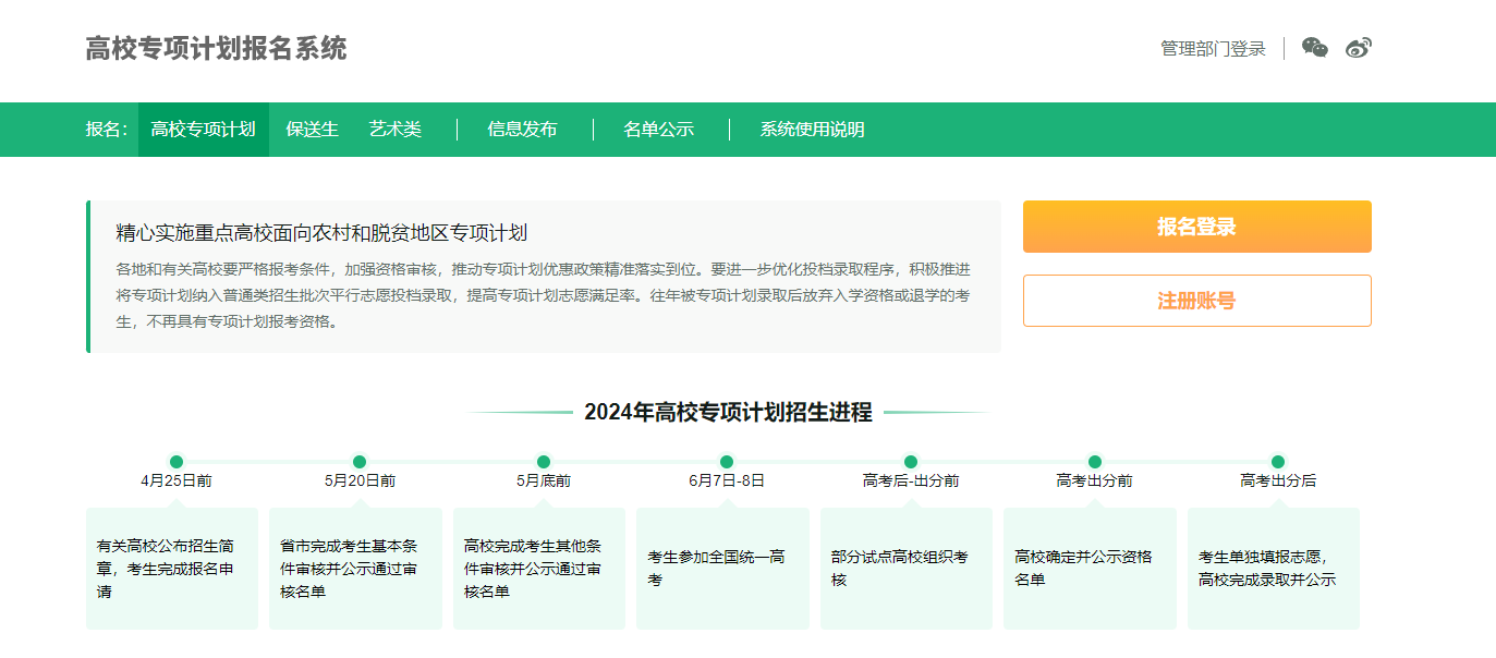 2024年全国高校专项计划开始,高校专项计划定向招收边远、脱贫、民族等地区县(含县级市)以下高中勤奋好学、成绩优良的农村学生。该专项计划是国家为畅通农村和脱贫地区学子纵向流动而开辟的渠道之一,本文为您同步报考流程和注意事项。