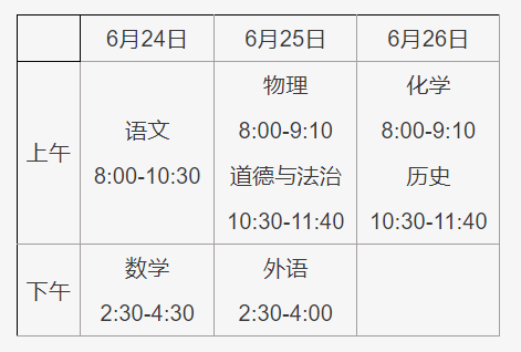 2024年北京初中学业水平考试时间表