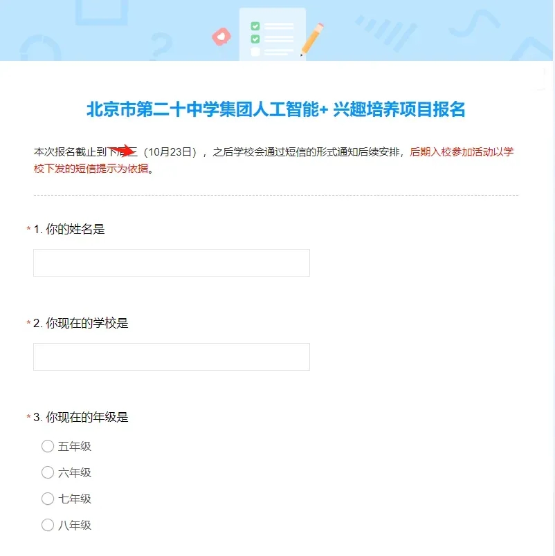 北京市第二十中学集团人工智能+兴趣培养项目报名注意事项