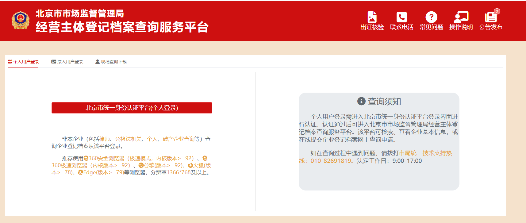 推荐使用360安全浏览器(极速模式)、谷歌(Chrome>=92)、火狐(Firefox>=78)、Edge(Edge>=79)等浏览器,分辨率1366*768及以上。若在互联网查询过程中出现问题,请拨打市局统一技术支持热线:010-82691819。