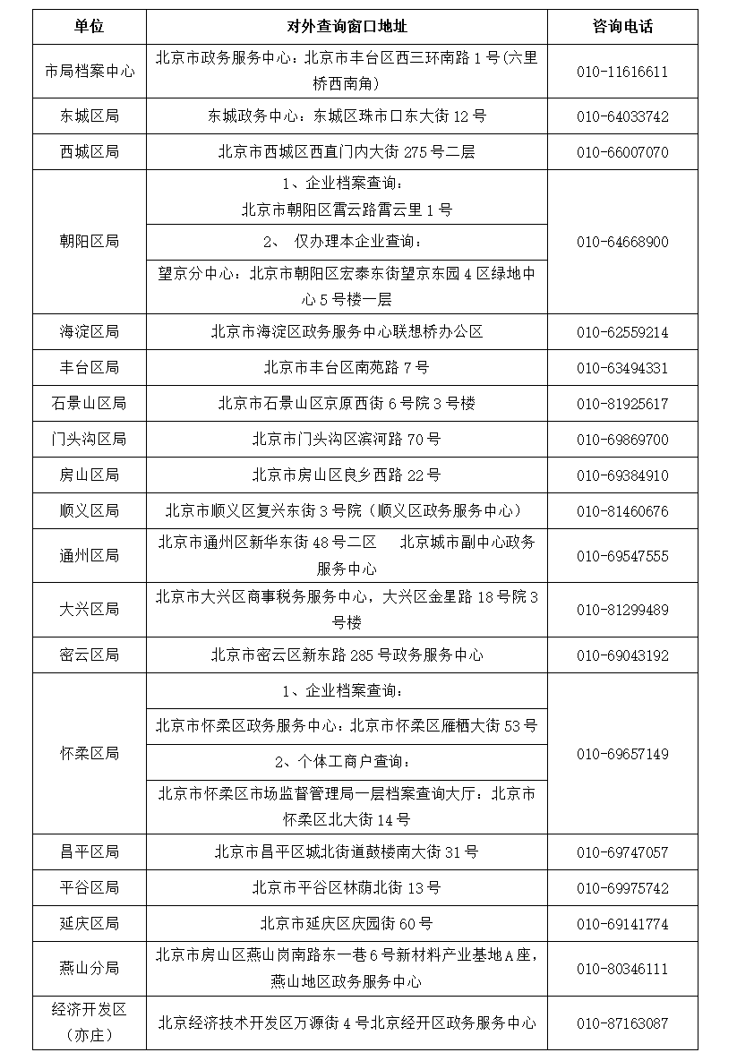 通查区局:顺义区局、大兴区局、石景山区局、门头沟区局、房山区局、通州区局、昌平区局、怀柔区局、密云区局、延庆区局、平谷区局、经济技术开发区行政审批局、房山区燕山分局。