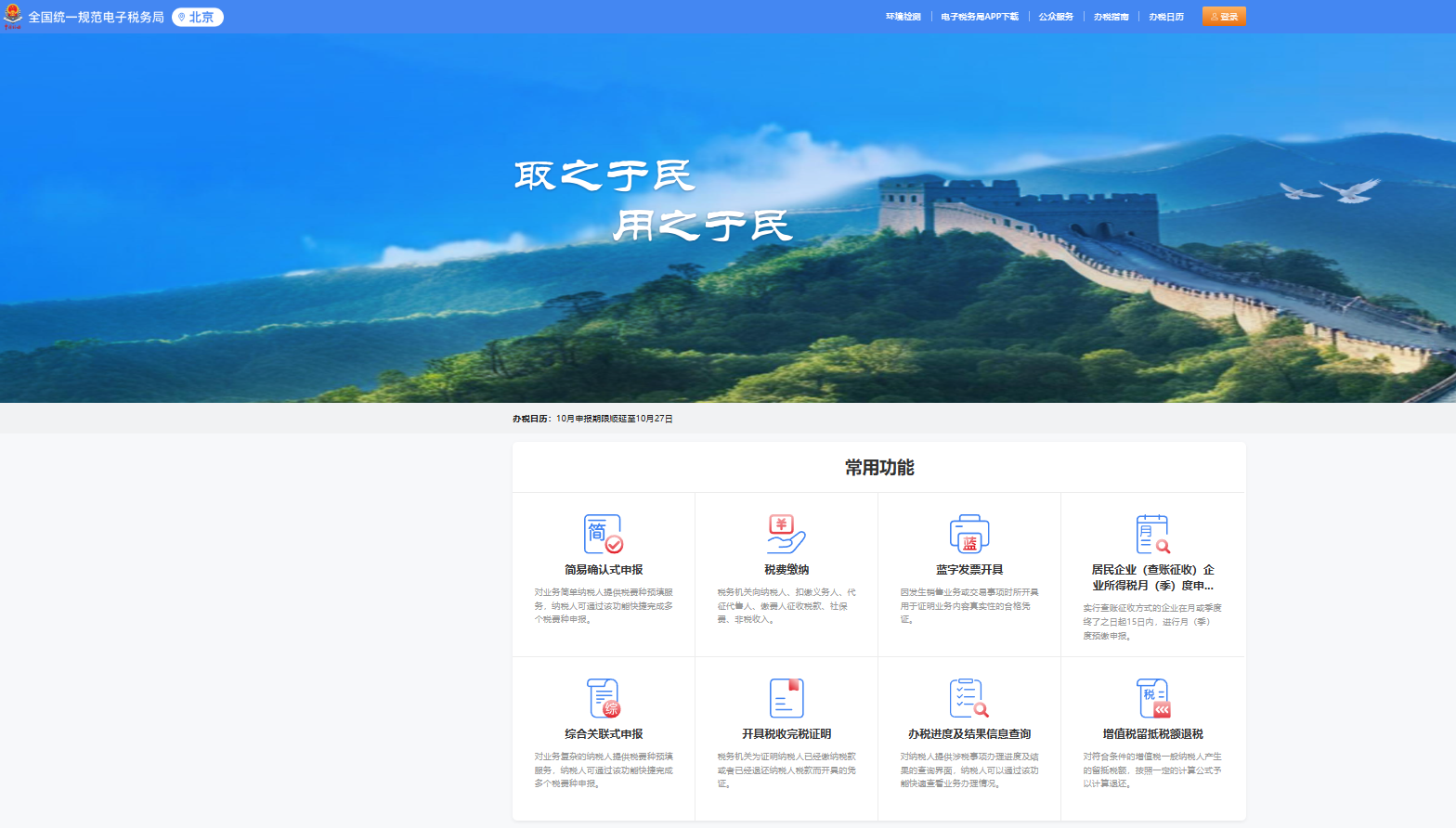 产权所有人(即出租方)进入国家税务总局电子税务局官方页面(https://etax.beijing.chinatax.gov.cn:8443/),点击右上角登录。