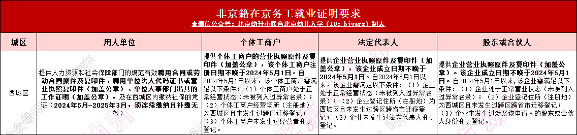 2026年西城区非京籍幼升小“四证”审核进入关键筹备期,个体工商户、法人代表、股东或合伙人的在京务工就业证明材料要求已明确。核心需满足营业执照或企业成立日期不晚于2025年5月1日,注册地须在西城且处于正常经营状态,无跨区迁移及经营者、法人或股权变更记录。本文结合官方审核标准,详细拆解各类主体的材料清单与填报要点,助力家长提前核对准备,确保顺利通过联合审核。