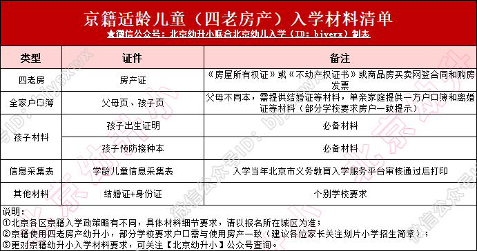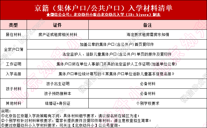 北京各区京籍入学材料清单详细要求不同,建议对照北京16区2026年京籍幼升小入学材料要求清单汇总(户籍区、非户籍区上学要求)准备;