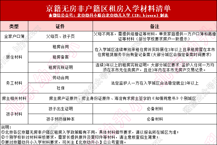 无房京籍在非户籍区租房入学涉及社保、租房备案等材料的准备,建议家长关注: