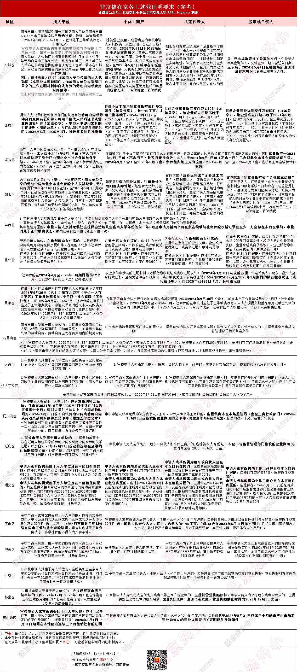 1、北京各区北京居住证时间要求不同,建议对照下表查看:
