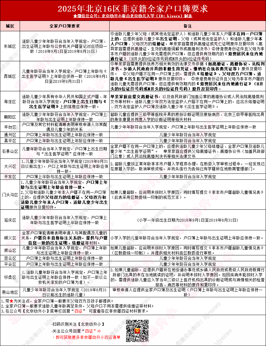 2、非京籍幼升小各区详细报名流程不同,建议对照查看城区要求2026年北京16区非京籍幼升小入学时间轴汇总:材料准备、政策发布、信息采集、小学报名、志愿填报派位;