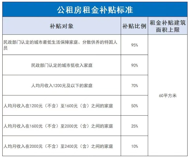 公租房租金补贴=公租房租金标准×补贴比例×补贴面积