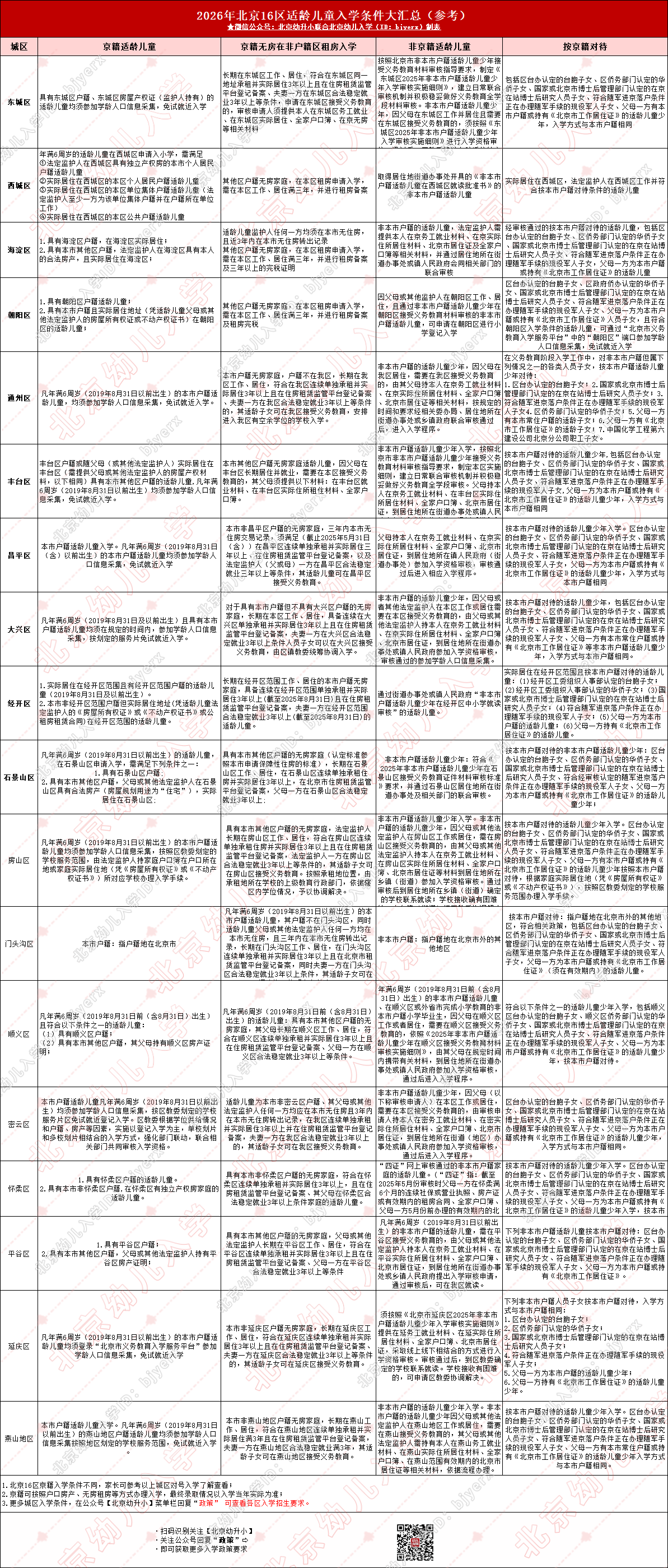 温馨提醒:北京各区四证要求不同,一定要关注北京幼升小16区2026年非京籍四证清单及详细要求(社保、租房合同、北京市居住等详细要求)