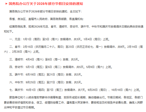 国务院办公厅已明确2026年元旦放假调休安排,本文详细梳理放假时间、调休补班安排及高速收费规则,助力市民提前规划元旦出行与工作安排,避免行程延误。