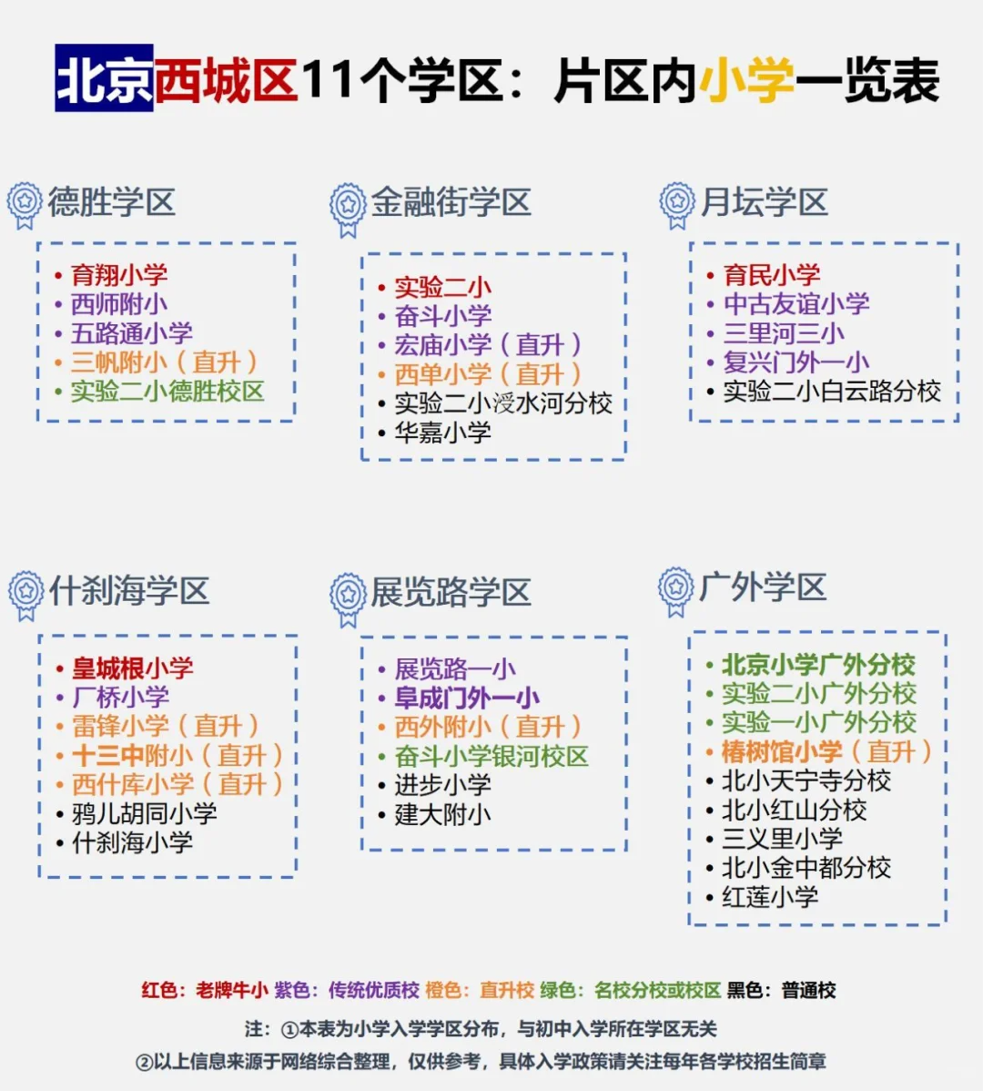 西城区各学区片区内小学一览表