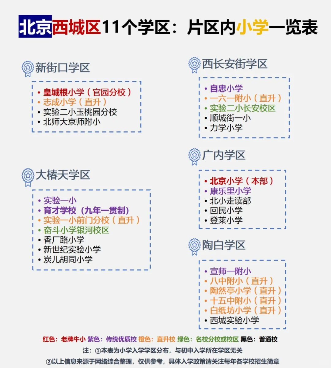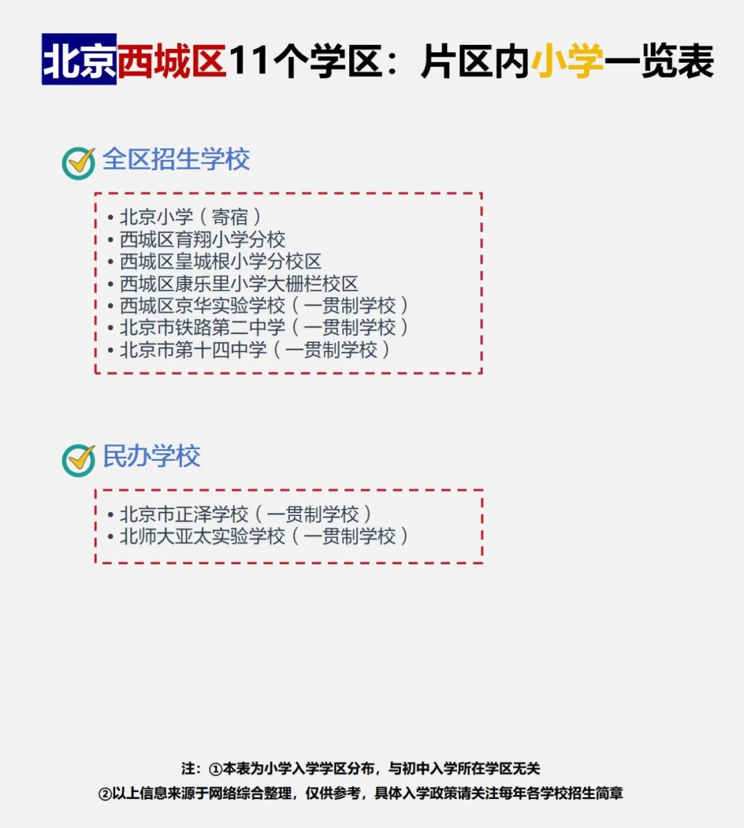 西城区学区划片划分一览表