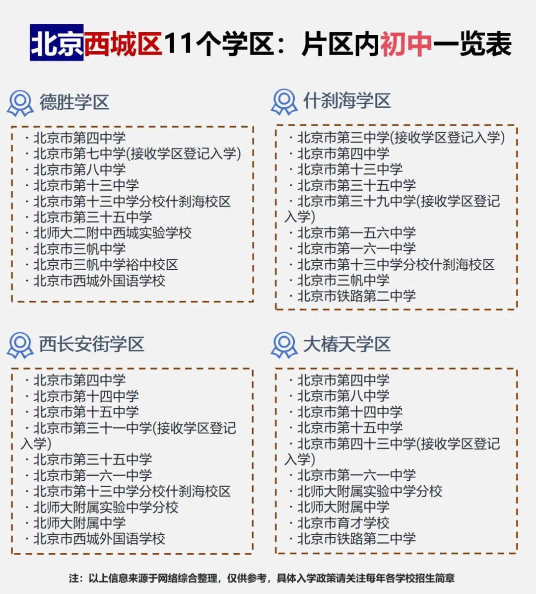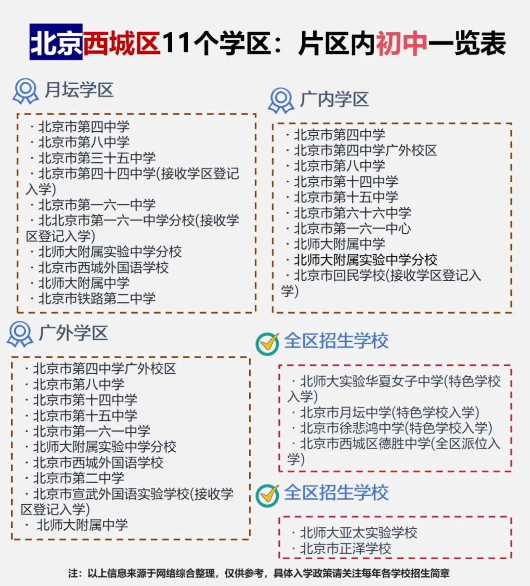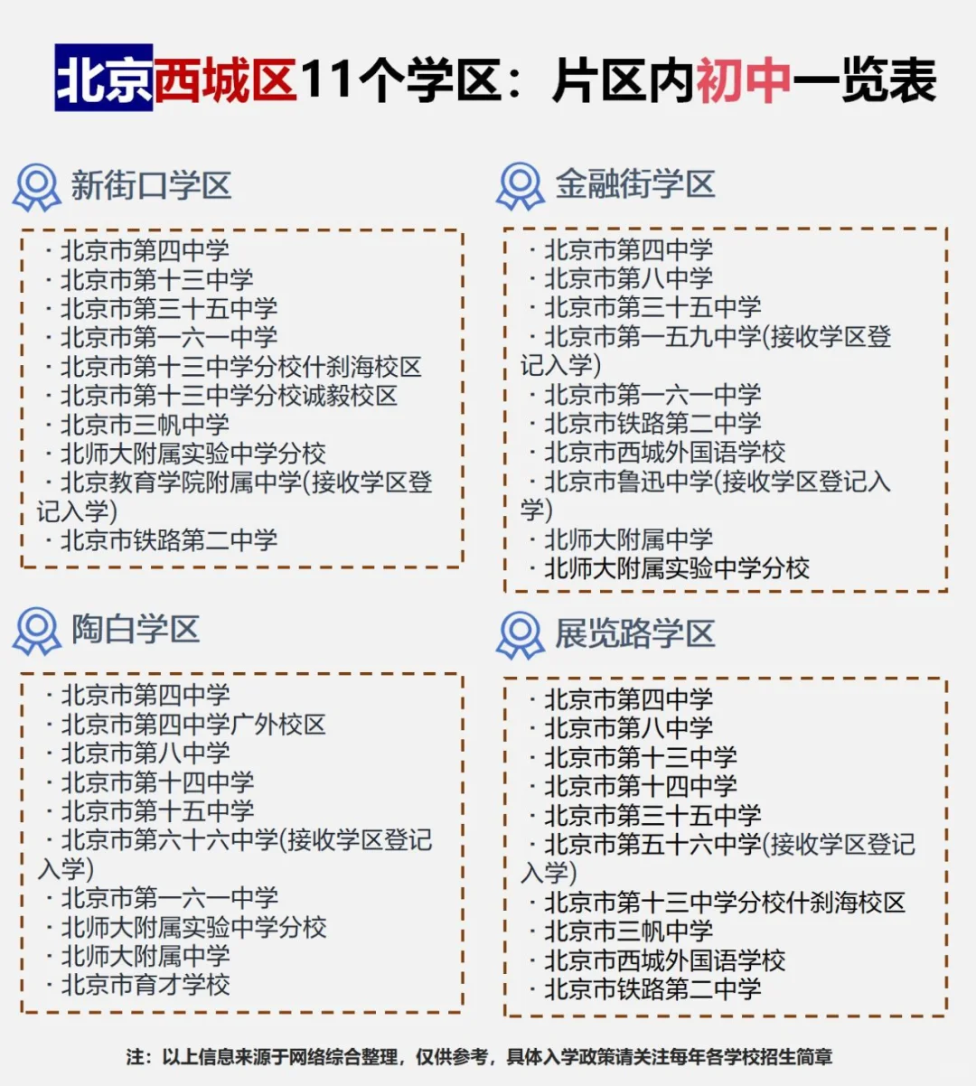 西城区各学区片区内初中一览表