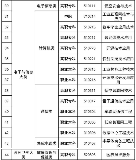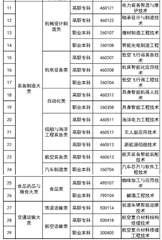 相关院校紧密围绕建设现代化产业体系、发展新质生产力、推进新型工业化、发展实体经济等要求,聚焦国家重大战略、区域重点产业以及民生紧缺领域对高素质技能人才新需求,对接新产业、新业态、新模式、新职业,重点论证增补低空经济、人工智能、数字经济等新兴领域,新能源汽车、航空航天装备、集成电路等先进制造业,生物育种、农产品种养和加工、农业经营等现代农业,养老、托育等现代服务业重点领域相关专业。