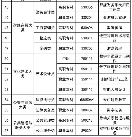 清单显示,此次新增57个职教专业,聚焦国家重大战略、区域重点产业以及民生紧缺领域对高素质技能人才新需求,覆盖低空经济、具身智能等前沿领域。一起来看↓↓↓