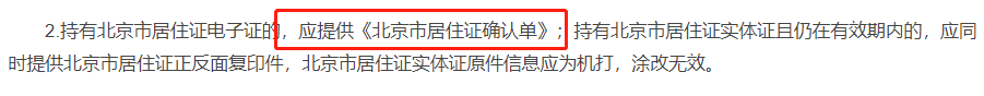 2.如您还未持有北京居住证,请抓紧时间办理准备,详细办理方法、流程、卡换证方法可参考北京市居住证续签签注办法、流程、材料及常见问答。持电子证的,应提供《北京市居住证确认单》;持有北京市居住证实体证且仍在有效期内的,应同时提供北京市居住证正反面复印件,北京市居住证实体证原件信息应为机打,涂改无效。