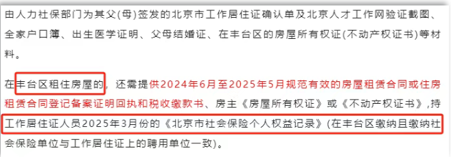丰台区租房入学,需提供2025年5月3月份的《北京市社会保险个人权益记录》(在丰台区缴纳且缴纳社保单位与工作居住证上的聘用单位一致)