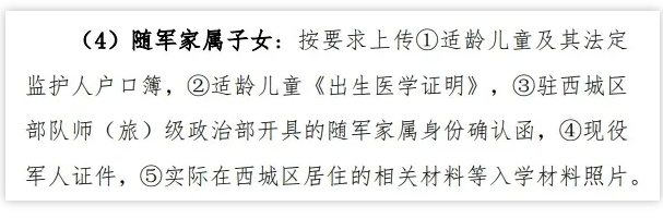 2026年西城区随军子女幼升小,需提供本区的随军家属身份确认函,且在西城区实际居住!今年入学家长可对照上图,逐一筹备入学材料!